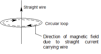 Hint:When a straight wire carrying a current runs along the axis of a circular current, the magnetic field due to the straight wire is in the plane that of the current flow in the circular loop. Also the magnetic field lines of the circular loop carrying current on the axis of the loop are along the axis of the circular loop itself. Thus, the current in the loop and magnetic field will be parallel to each other.
