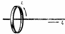 A straight wire carrying a current ${I_2}$ runs along the axis of a circular current ${I_1}$ (Fig.). What is the force of interaction between the currents?
