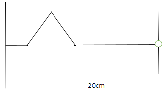 A string of linear mass density \[0.5g\,c{m^{ - 1}}\] and a total length \[30cm\] is tied to a fixed wall at one end and to a frictionless ring at the other end (figure below). The ring can move on a vertical rod. A wave pulse is produced on the string which moves towards the ring at a speed of \[20cm\,{s^{ - 1}}\]. The pulse is symmetric about its maximum which is located at a distance of \[20cm\] from the end joined to the ring.