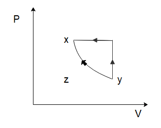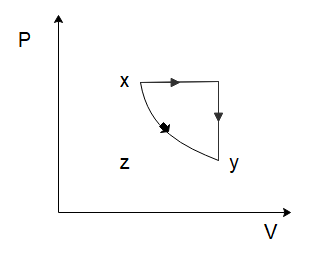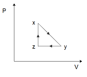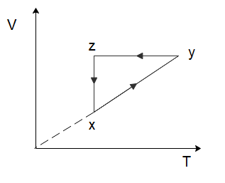 In the process \[y \to z\], we can see that the volume of the gas remains constant, while the temperature of the gas decreases. Again, from the ideal gas law, we can deduce that the pressure of the gas would have to decrease to ensure the ideal gas law holds true. So, the pressure decreases, and the volume of the gas remains constant which is again only shown in option (C).