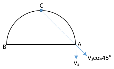 \[{v_s} = 30\,m/s\cos 45^\circ = \dfrac{{30}}{{\sqrt 2 }}m/s\]