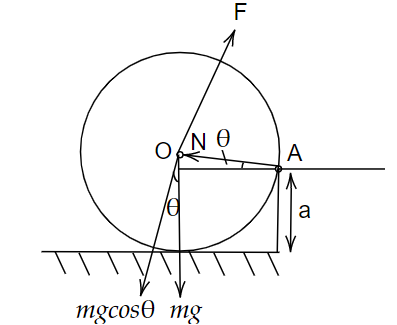 In order to lift the sphere, if you see a point A, there should be a net torque about point A in the clockwise direction. There are two forces because of which the torque is coming. The two forces are F and mg. The torque because of F is \[{\tau _F} = FR\] in clockwise direction and \[{\tau _{mg}} = mgR\cos \theta \] in anticlockwise direction. Since, we want the toque in the clockwise direction. Therefore,