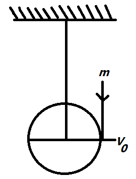 $m{v_0}R = \left( {\dfrac{{M{R^2}}}{2} + m{R^2}} \right)\omega $