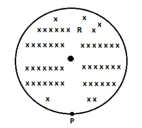 A uniform magnetic field of induction $B$ is confined to a cylindrical region of radius $R$. The magnetic field is increasing at a constant ratio of $\dfrac{{dB}}{{dt}}$. An electron of charge $q$, placed at the point $P$ on the periphery of the field experiences an acceleration: