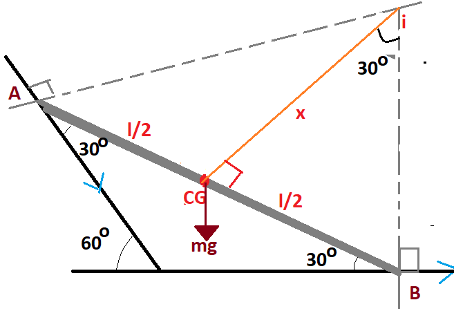 Note: Torque is always at the perpendicular direction. The instantaneous centre is the point where both the points seem to be in rotational motion about that point. Whenever a body is rotating at an offset always adds its effect on moment of inertia.