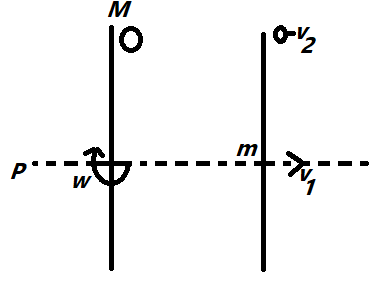 $\dfrac{{m{l^2}}}{{12}}\omega = M{v_2}\dfrac{l}{2} .....(i)$