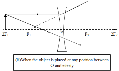 The position of the images when the object is placed at infinity, between O and F and any position between infinity and O are given below in the diagrammatic representation.