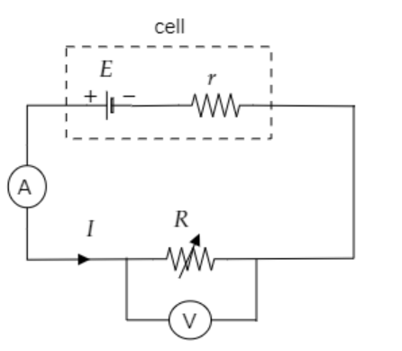 Note: Here the internal resistance of the cell and the variable resistor are essentially connected in series. In a series connection between two resistors, the current through each resistor will be the same. However, the potential drop across the internal resistance and the variable resistance are different. The term $I \times r$ in equation (1) is the potential drop across the internal resistance of the cell. Equation (1) can also be referred to as the voltage equation of the given circuit.