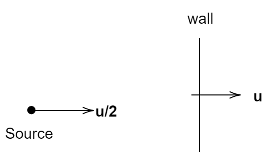 As given in the question, the velocity of the wall is $u$ , the velocity of the source of sound is $\dfrac{u}{2}$ and the velocity is $10u$ .