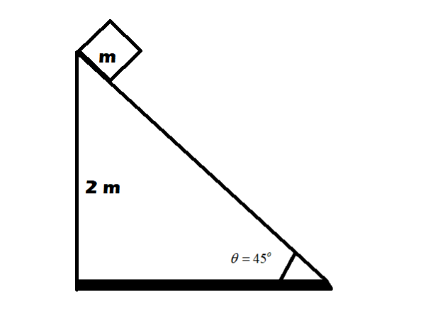 A wedge of mass $2m$ and a cube of mass m are shown in figure. Between the cube and wedge, there is no friction. The minimum coefficient of friction between wedge and ground so that wedge does not move is