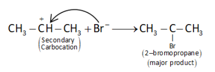 (ii) In the following step the nucleophile$\left( {B{r^ - }} \right)$ attacks the secondary carbocation to form secondary halide.