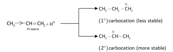 Hint: Markonikov’s rule is applicable only for unsymmetrical alkene. Alkenes undergo electrophilic addition reactions. Additional reactions are very common in case of alkenes because of their unsaturation property. The additional reactions chemically take place by formation of carbocation.