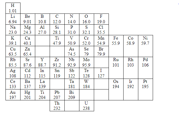 Let us begin by studying Mendeleev’s periodic law and its resultant classification of elements in detail. Here, Symbols of elements and its atomic masses are shown