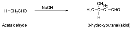 Acetaldehyde is an aldehyde containing ${{\alpha }}$ - hydrogen atoms and so they can be easily abstracted by a base. So acetaldehyde will undergo aldol condensation reaction with sodium hydroxide to give 3- hyroxybutanal which is an aldol. The reaction is shown below: