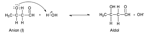 Step 3: Abstraction of proton from water by the anion (I) to form aldol.