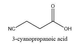 When a molecule contains a carboxyl group and nitrile functional group then the nitrile group is pronounced as the cyano group. The carbon atom of the cyano group is not counted as a part of the main chain. For example, 3-cyanopropanoic acid.