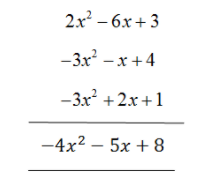 $2{x^2} - 6x + 3; - 3{x^2} - x + 4;1 + 2x - 3{x^2}$