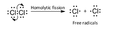 A homolytic molecule undergoes homolytic fission to give free radicals. In homolytic bond fission, the shared pair of electrons is distributed equally between two bonded atoms. So, option C is wrong.