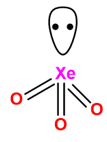 The structure of \[Xe{O_3}\](xenon trioxide) has the \[Xe\] as a central atom and it is surrounded by three oxygen atoms via \[Xe = O\] bonds (covalent bonds). The exact structure of \[Xe{O_3}\]is represented below which represents the presence of one lone pair of electrons on the xenon centre.