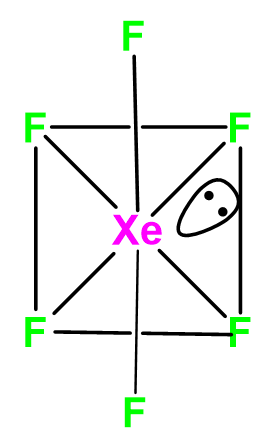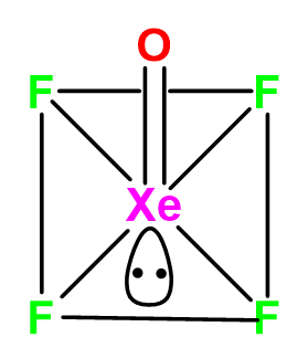 Similarly, the structure of \[XeO{F_4}\] contain \[Xe\] as the central atom and it is surrounded by one oxygen and four fluorine atoms via \[Xe = O\] and \[Xe - F\] bond respectively. Like the structure of \[Xe{O_3}\], \[XeO{F_4}\] also has one lone pair of electrons on a xenon atom. The \[XeO{F_4}\]has a square pyramidal shape and \[s{p^3}{d^2}\]hybridization.