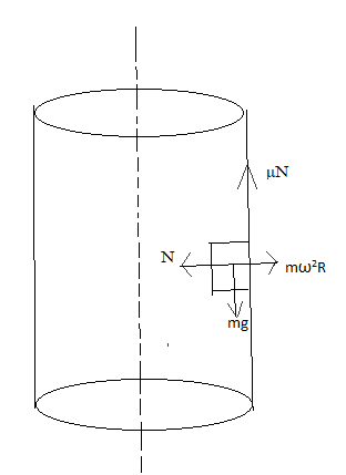 A) Angular velocity is \[{\omega _{min}} = \sqrt {\dfrac{g}{{\mu R}}} \] for everyone to stay inside.