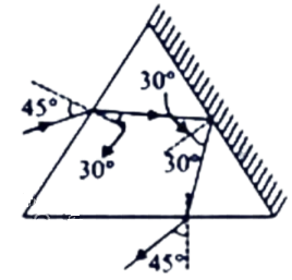 An equilateral prism is made of a transparent material of refractive index 2.A ray of light AB is incident at 45 as shown. The net derivation in the path of the ray when it comes out of prism is?