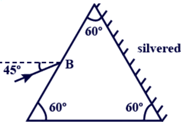 Let us name the triangle as PQR. The side where AB ray hits is PQ and the silvered side is PR.