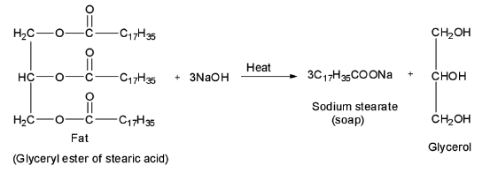 Soaps are formed by heating fat or oil, or in other words, glyceryl esters of fatty acids with aqueous sodium hydroxide solution. Alcohol is also formed in this process. This process of conversion of fats, oils or lipids into soap and alcohol is known as saponification reaction.