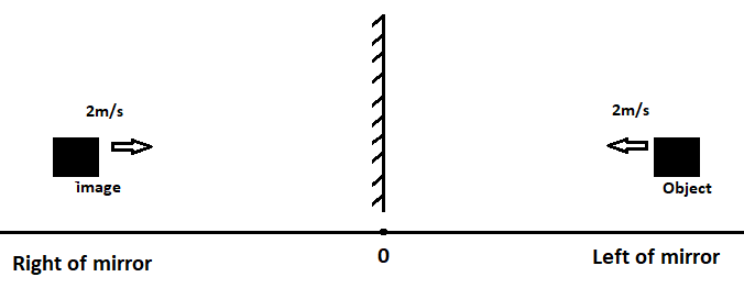When the object is kept in front of the mirror which is stationary and plane and that object is moving with the speed of \[2m{s^{ - 1}}\]in left of the mirror.