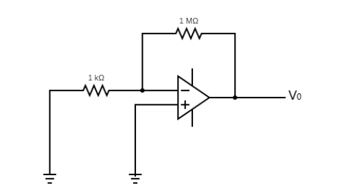 \[{V_{out}} = \dfrac{{1000k\Omega }}{{1k\Omega }}0.001{\text{V}} = 1{\text{V}}\]