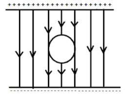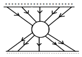Note: It is important to note that in option A, negative charge would be induced on the upper surface of the sphere, and positive charge would be induced on the lower surface. Also, the electric lines of force never intersect the conductor. These lines are perpendicular and slightly curved near the surface of the conductor. Also, these lines of force would enter the sphere normally at the surface.