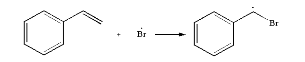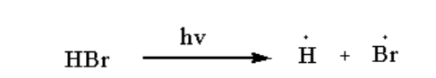 The hydrogen bromide undergoes homolysis to form a free radical of hydrogen and bromine.