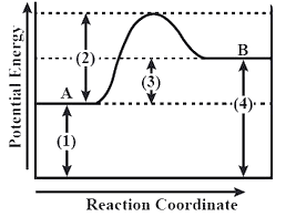 -Whereas the position (3) shows the difference between the energy of reactant and product which is given by: ${{\text{E}}_{\text{B}}}\text{ - }{{\text{E}}_{\text{A}}}$.