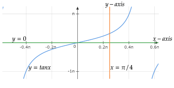 Figure 1: A graph containing the given equation of the curve y=tan x and the line x=π/4