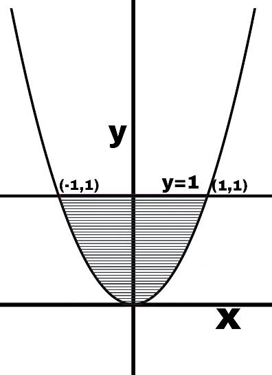 What is the area of parabola ${{x}^{2}}=y$ bounded by the line $y=1$