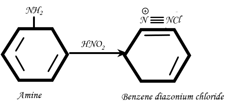The reaction process that occurs when amine reacts with cold \[HN{O_2}\] will now be discussed below: