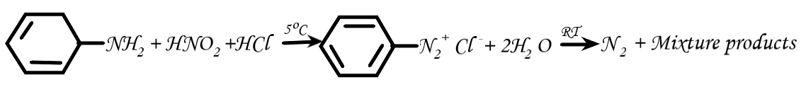 A primary aromatic amines react with cold \[HN{O_2}\]and dissolved in dilute \[HCl\]at \[0 - 5^\circ C\]will produced diazonium salt. The nitrogen gas will emerge when the cold salt is heated to the room temperature.
