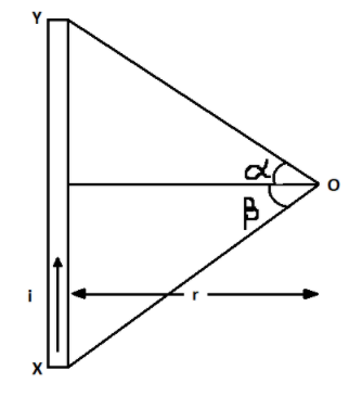 $B = \dfrac{{{\mu _0}i}}{{4\pi r}}\left( {\sin \alpha + \sin \beta } \right)$