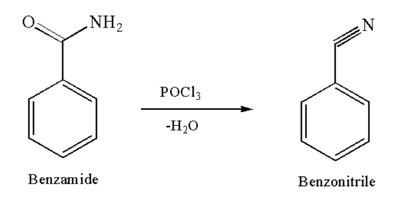 So, we can say that Benzonitrile is formed when benzamide reacts with \[POC{l_3}\].