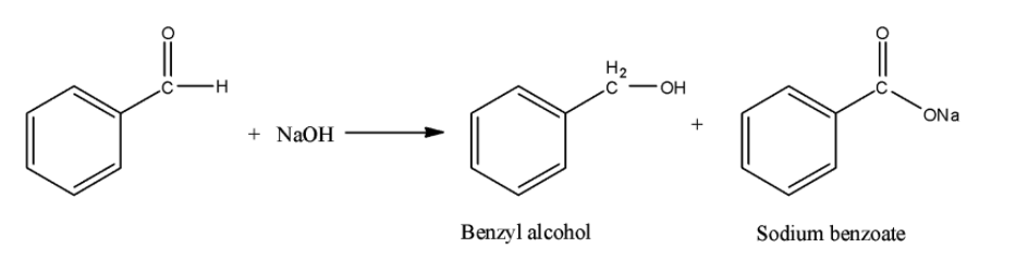 Benzyl alcohol and sodium benzoate is obtained by the action of sodium hydroxide on benzaldehyde. This reaction is known as