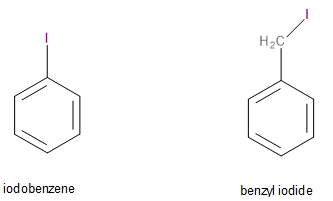 The given compounds are iodobenzene (\[{C_6}{H_5}I\]) and benzyl iodide (\[{C_6}{H_5}C{H_2}I\]). Their structures are given below: