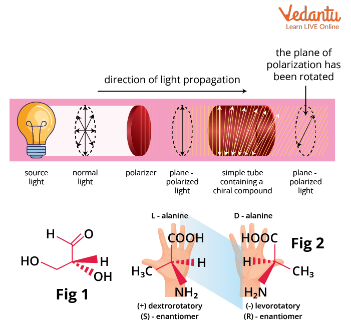 Optical activity is defined as the ability of a chiral compound to rotate the plane of plane-polarized light passed through it. Based on the direction of rotation of the plane polarized light, a chiral molecule can be classified as dextrorotatory and levorotatory.