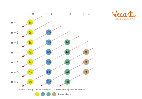 The order in which the energies of the electronic orbitals increase and their respective order of filling as per the Aufbau rule is as follows: