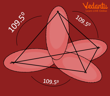 - sp3 – Tetrahedral: Example CH4