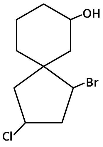 For example, in 2-bromo-4-chlorospiro[3.4]octane, ‘2-bromo’ indicates the position in the smaller ring and ‘4-chloro’ in the larger. Working extra example problems on naming and drawing such substituted structures is essential.