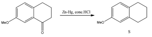 This has only one reagent and even that is repeated. We saw this reagent when we were finding Q as the third reagent. This reagent is used for the Clemmensen reduction reaction and converts aldehydes and ketones to alkanes. Here, the sole ketonic group will be converted to an alkyl group. The reaction will be as follows: