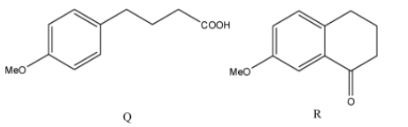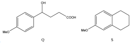To find the answer to this question, we will look at each of the reagents mentioned separately and then determine which molecule we will get as a product. According to this method, we will look at 3 reactions to obtain Q, 2 reactions to obtain R, and 1 reaction to obtain S.
