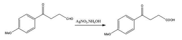 We know that this is the Tollen’s reagent that is used to perform the silver mirror test that shows the presence of an aldehydic group in any molecule. The Tollen’s reagent is an oxidizing agent that oxidizes the aldehydic group to a carboxylic acid group. But it is not a strong enough oxidizing agent to oxidize a ketone so that group will remain unchanged. The reaction will continue as follows:
