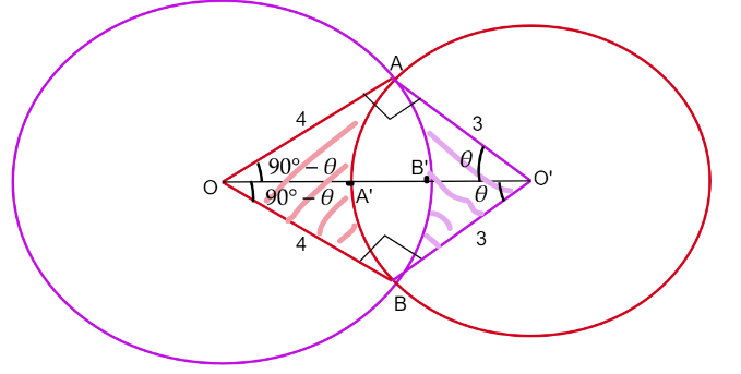 Therefore, Area common to the two circles ($AA'BB'$)$ = Ar.AOBO' - Ar.AOBA' - Ar.AO'BB'$
