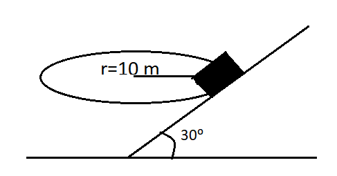 In a body force mg is in downward direction and normal reaction is along incline. Here the incline is in \[{30^0}\](in figure). The friction force is along incline and it is at maximum because it moves its maximum speed. Also a centrifugal force acts on it in an outward direction.